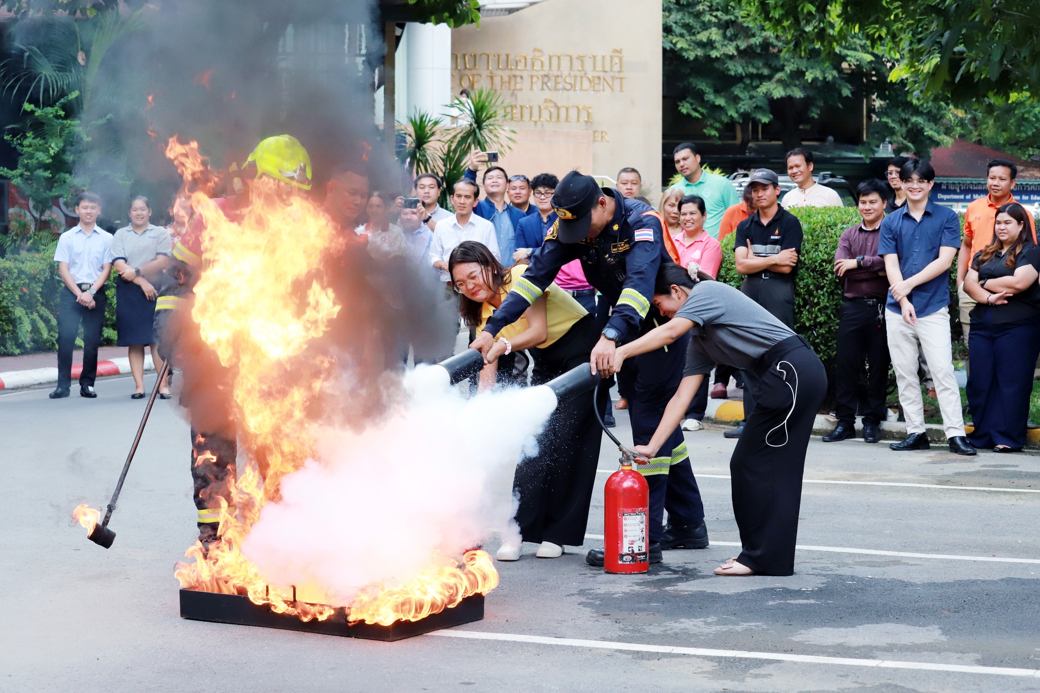 ✅ การอบรมการดับเพลิงขั้นต้นและการใช้อุปกรณ์ดับเพลิง โดยทีมวิทยากรจากสถานีดับเพลิงและกู้ภัยสามเสน